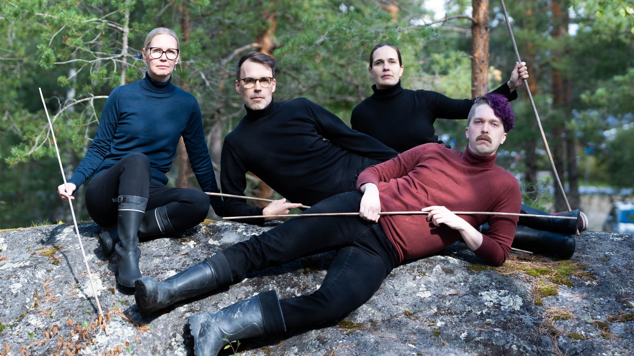 Kuva: Mika Kivisaari. Kuvassa osa Runomaraton-tapahtuman järjestäjistä: Venla Korja, Ossi Haapanen, Joni Rantala, Tanja Holm ja edessä Kirsi Haapamatti ja Jenna Varismäki.